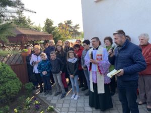 W tym roku – raz w tygodniu (w środę) – nabożeństwo majowe odbywa się poza naszym kościołem parafialnym, przed wskazaną w ramach niedzielnych ogłoszeń figurą Matki Najświętszej, znajdującą się na terenie naszej parafii. Pierwsze tego typu nabożeństwo odbyło się 8 maja o godzinie 18.00 przed kapliczką przy ul. Skrajnej 44A – na terenie posesji Państwa Gabryel. Dziękujemy serdecznie gospodarzom miejsca za gościnność oraz wszystkim uczestnikom nabożeństwa z wspólnotę modlitwy!