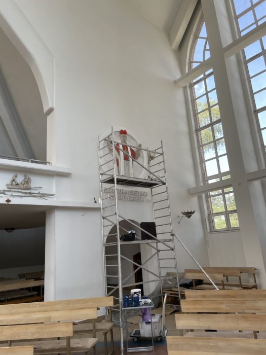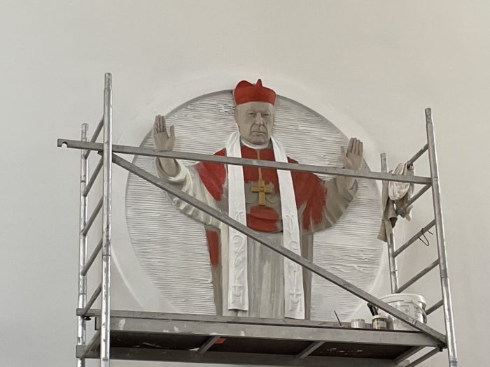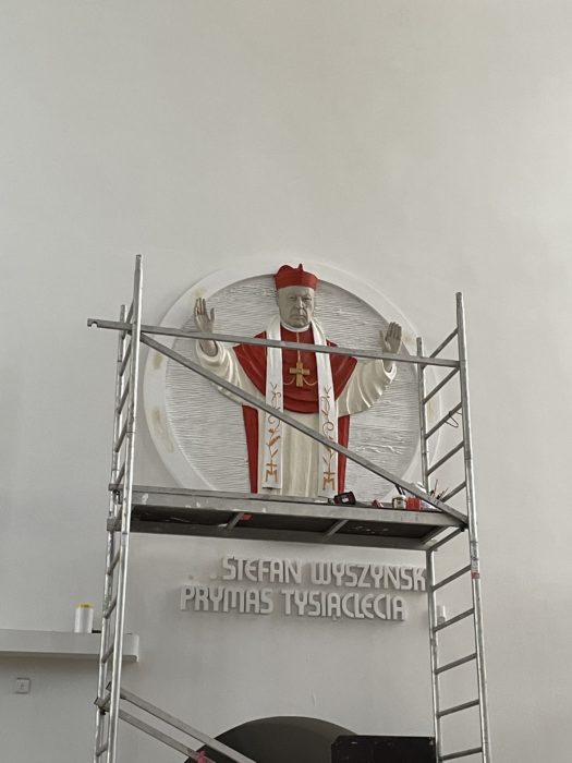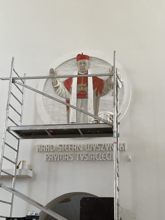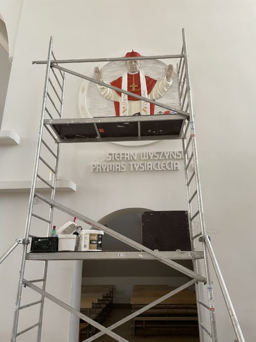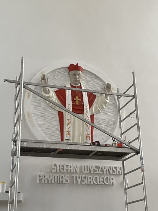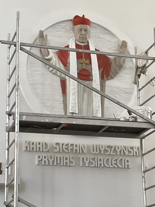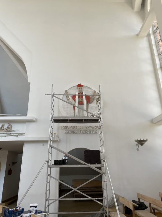 Uprzedzając nieco wrześniową beatyfikację, w związku z prowadzonymi aktualnie pracami malarskimi, zamieszczony został już skrót wskazujący na bycie Stefana kardynała Wyszyńskiego błogosławionym. Poniżej zamieszczamy zdjęcia z etapów prowadzonych prac.